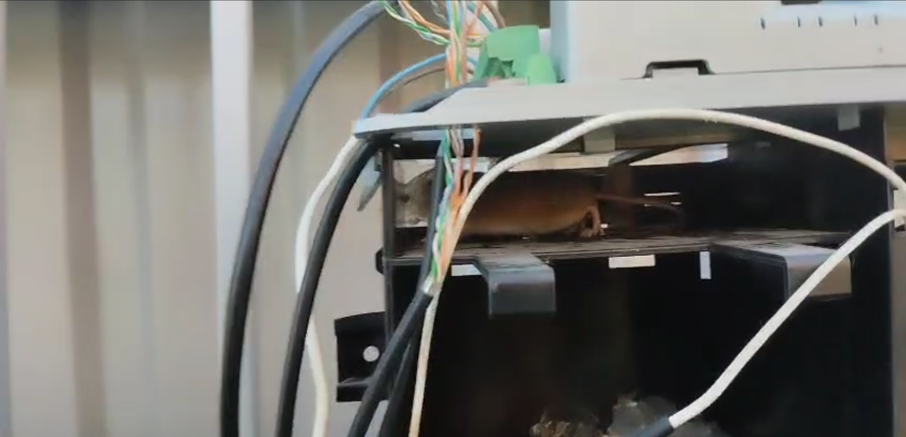 Маленькая мышка свила гнездо в приводе для откатных ворот
